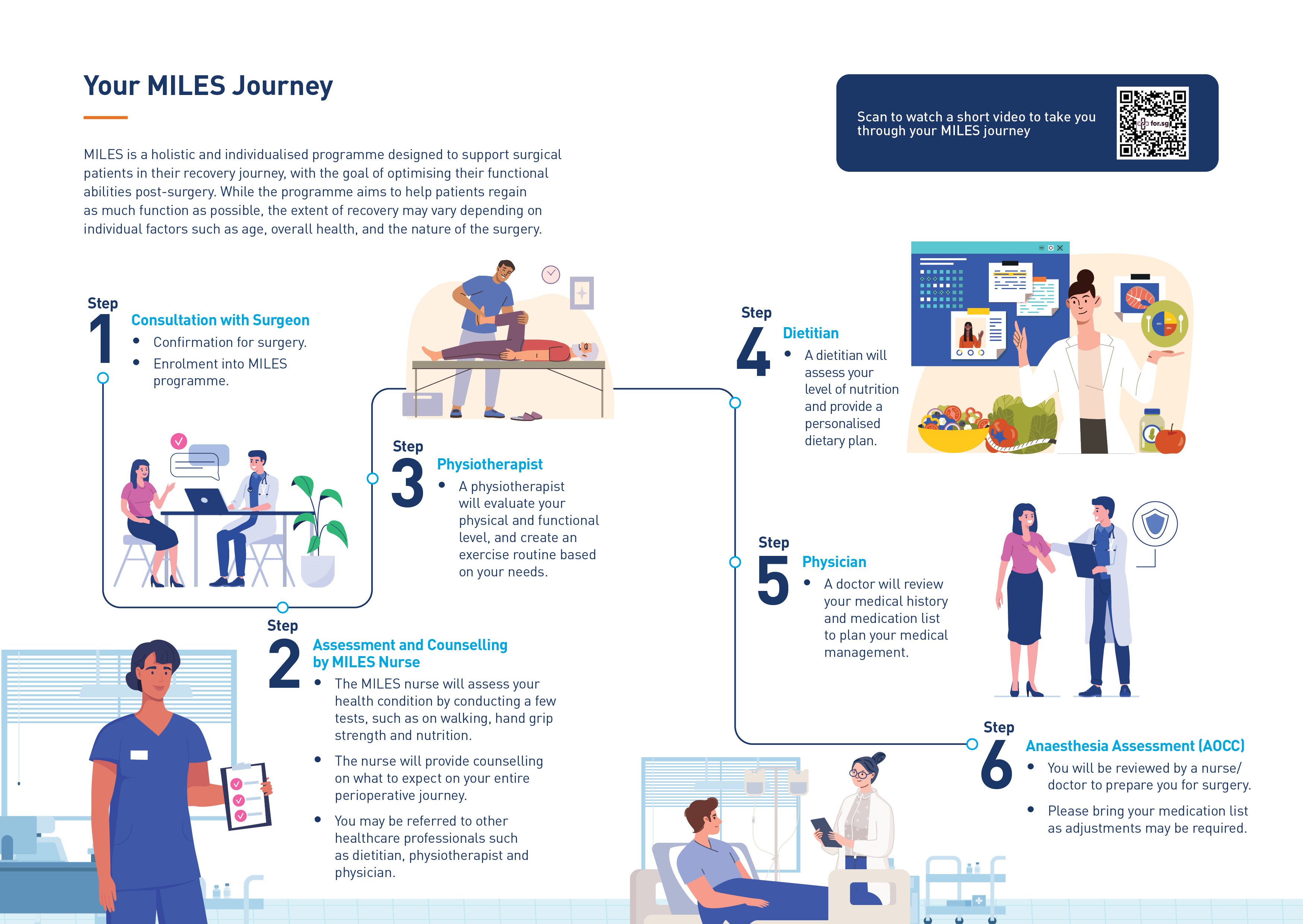 Introducing the MILES programme, a nurse-led initiative that represents a holistic and tailored approach to perioperative care for all patients, regardless of age. This comprehensive programme offers a multidisciplinary care model that spans the entire surgical experience.