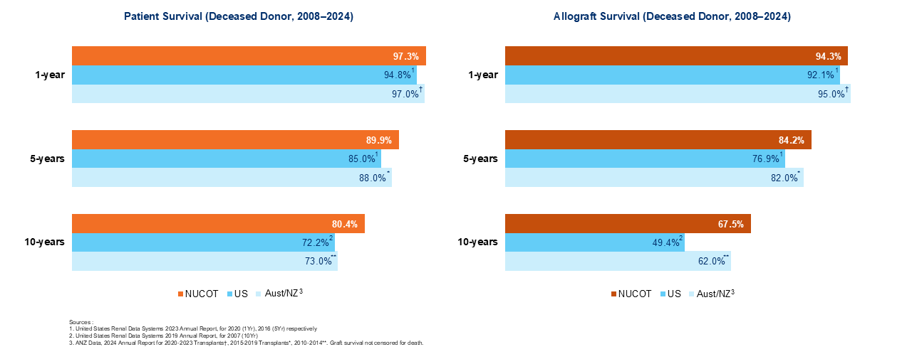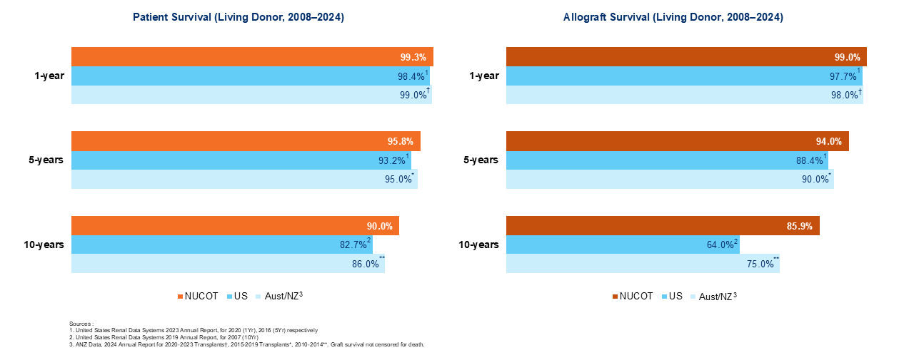 Professor Chan Kong Thoe, head of the then University of Singapore’s Professorial Surgical Unit, led the first deceased donor kidney transplant in the country in 1970. NUH commenced its operations in 1985, and the first kidney transplant in the hospital took place in 1987. Since then, NUCOT has consistently demonstrated outstanding clinical outcomes, meeting international standards.