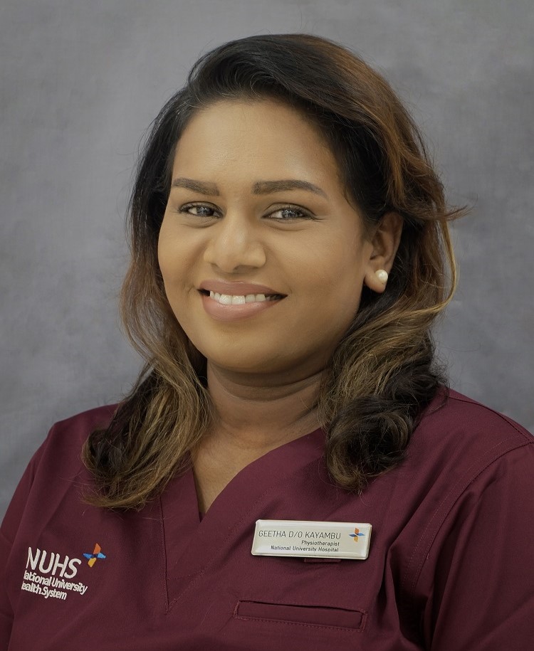 | | Dr Geetha Kayambu Principal Physiotherapist Research Director Doctor of Philosophy, The University of Queensland, Australia Bachelor of Science (Hons) (Physiotherapy), Curtin University of Technology, Australia Specialty and Interest Areas Critical Care and Cardiothoracic Intensive Care Cardiac Rehabilitation Obesity and Weight Management Acute Cardiopulmonary Clinical Education Tele Simulation Lab Education