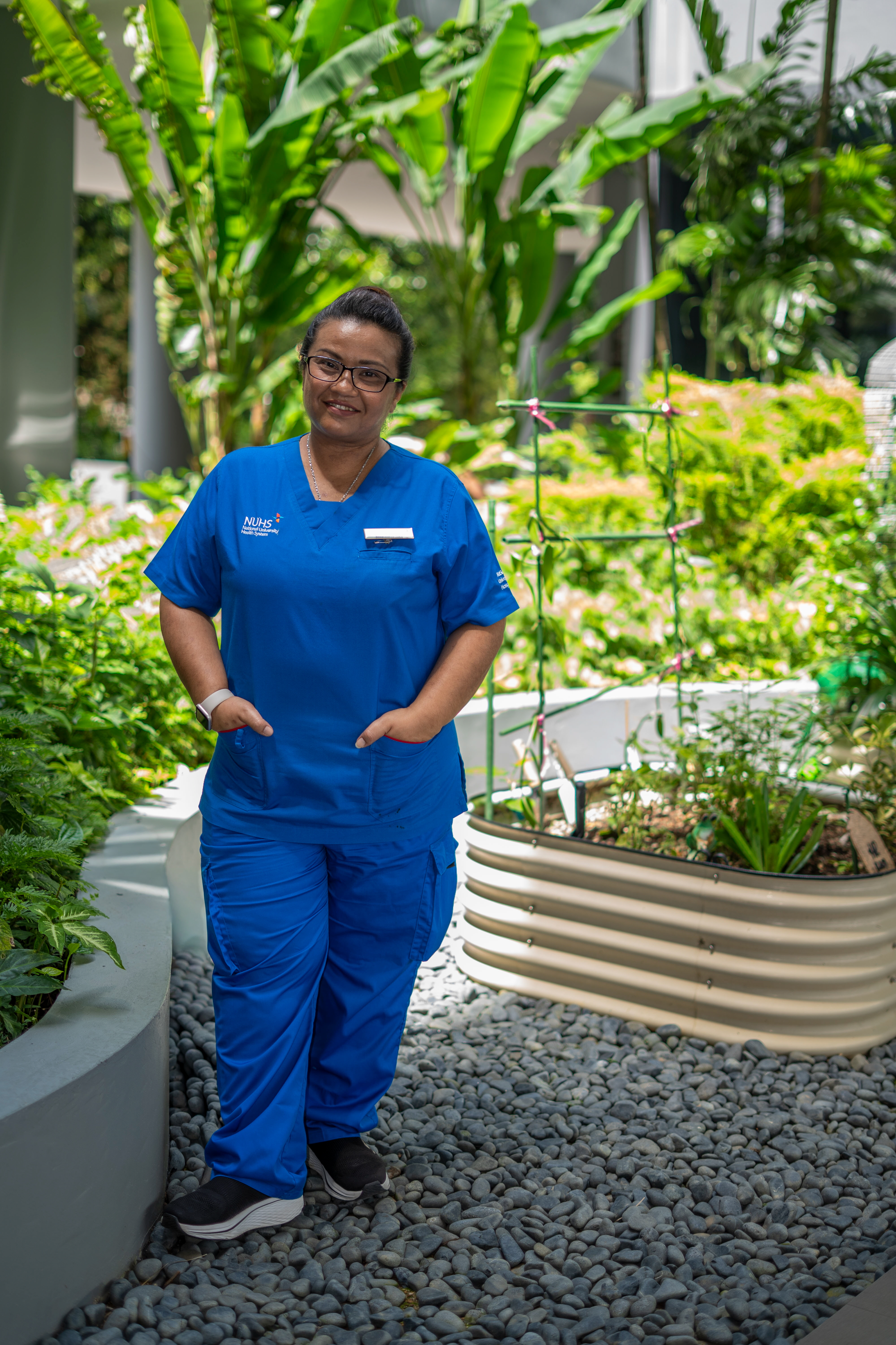 | Full Circle: From Receiving Care to Leading The Future of HealthcareAs a Nurse Clinician (Advanced Practice Nurse), my role extends beyond ward-based clinical duties. I also manage patients with cognitive impairment in the outpatient setting, mentor junior nurses and lead workgroups to enhance our current care and develop future nursing strategies. My journey into nursing was inspired by a personal experience. At 12 years old, I underwent corrective surgery for scoliosis. While surgeons performed the operation, it was the nurses who nursed me back to health. They encouraged my first steps post-operation and comforted me when I felt my worst. Their reassuring presence during that difficult time inspired me to pursue nursing. From the outset, I wanted to be a Nurse Clinician and an Advanced Practice Nurse. As part of staff development, NUH has provided me with many opportunities to hone my skills and broaden my exposure across various settings and acuity levels. I have been fortunate to meet many inspiring individuals who became my role models along my journey. Over the last 13 years, there have been many proud moments. These range from witnessing a bedbound patient walk out of the ward at discharge, to seeing a patient's son choose nursing after experiencing the care we provided for his mother. Even small expressions of appreciation from patients, caregivers or other healthcare professionals have been fulfilling. I remember the times when challenging family situations would bring me to tears. Now, I stand confidently with our nurses to manage such situations. What brings me the most joy is witnessing our nurses' growth in passion, knowledge and confidence. |
