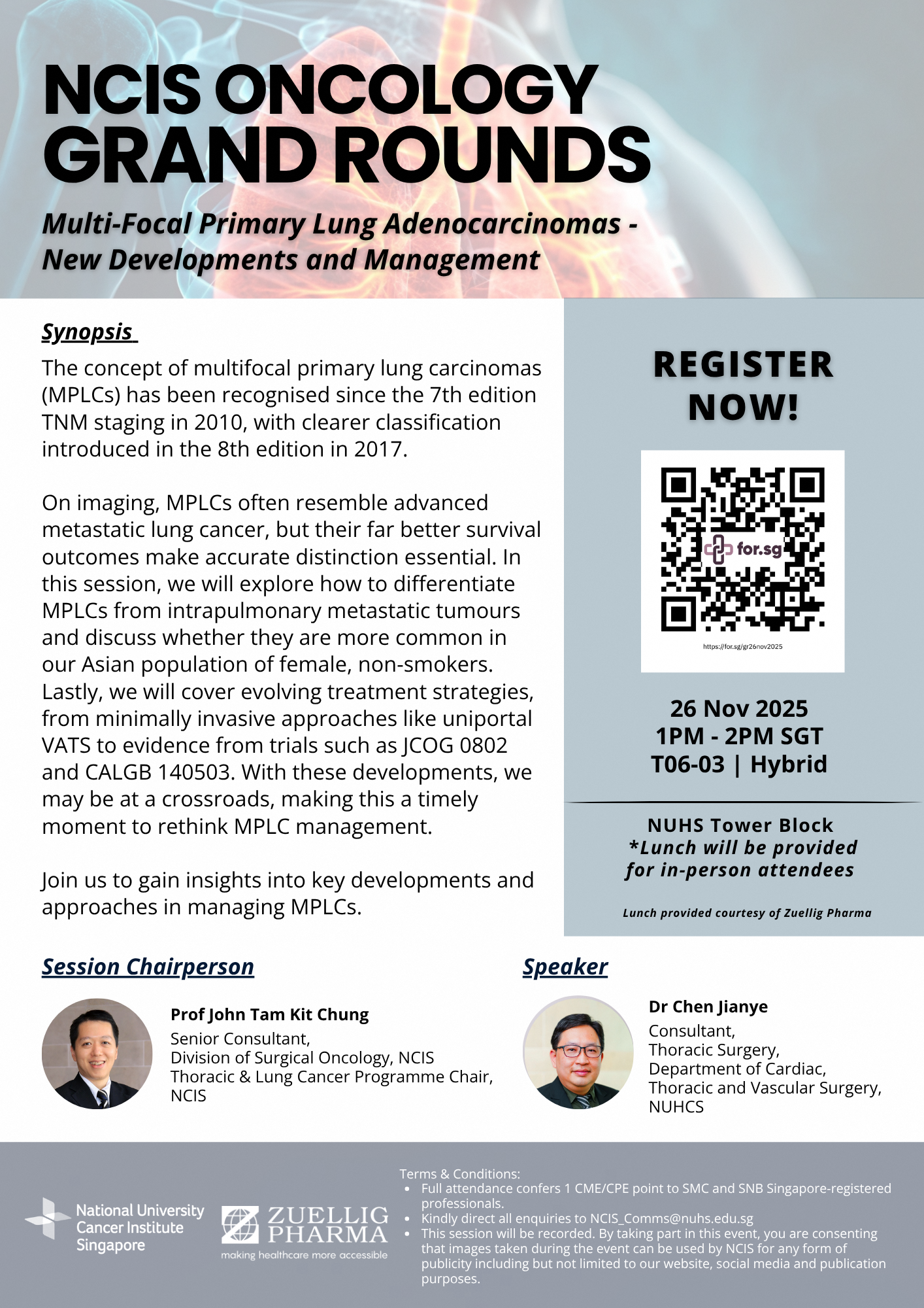 On imaging, MPLCs often resemble advanced metastatic lung cancer, but their far better survival outcomes make accurate distinction essential. In this session, we will explore how to differentiate MPLCs from intrapulmonary metastatic tumours and discuss whether they are more common in our Asian population of female, non-smokers. Lastly, we will cover evolving treatment strategies, from minimally invasive approaches like uniportal VATS to evidence from trials such as JCOG 0802 and CALGB 140503. With these developments, we may be at a crossroads, making this a timely moment to rethink MPLC management.