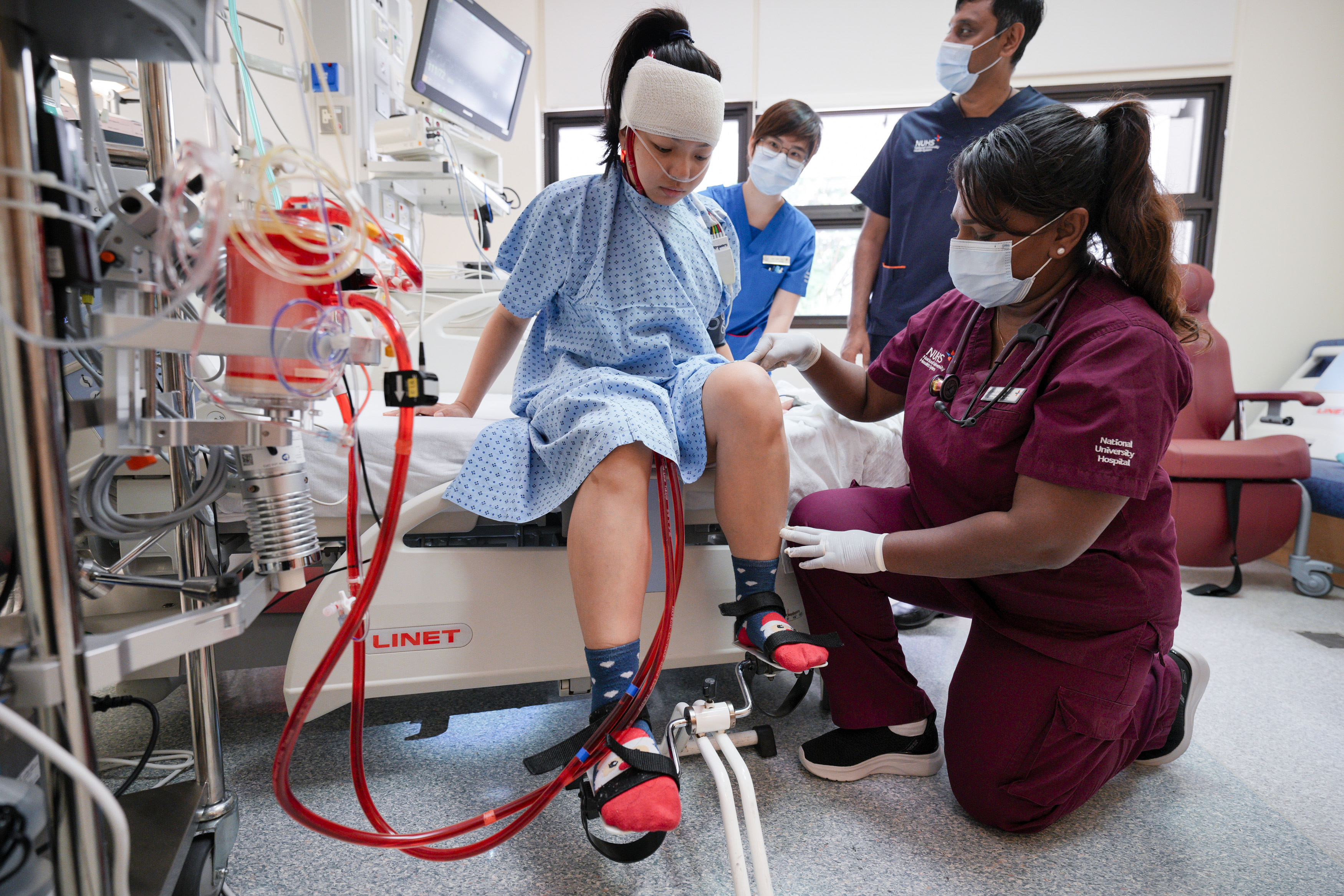 “By assisting patients with targeted movements while on awake ECMO, we help them return to physical function sooner, which shortens their recovery time,” says Dr Geetha Kayambu, Principal Physiotherapist and Research Director, Department of Rehabilitation, NUH. “It can prevent or mitigate ICU-acquired weakness, which can be debilitating and is one of the biggest challenges for patients on life support.”